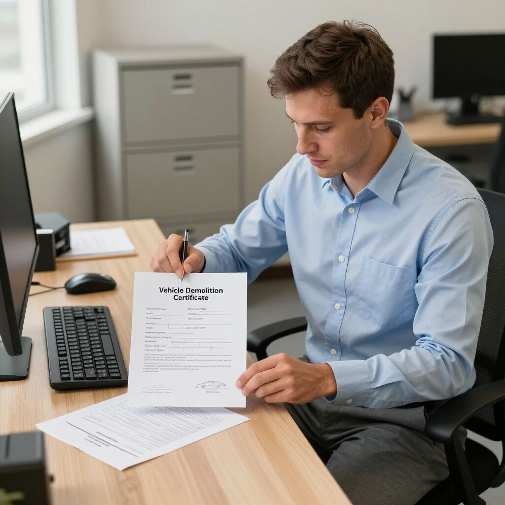 Compiliamo il certificato di rottamazione e ti chiediamo di controfirmarlo. Ci occupiamo poi della pratica per la demolizione.